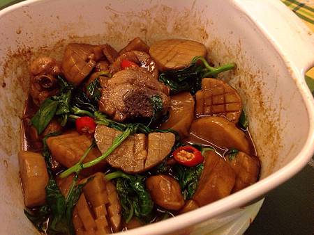 材料:雞腿1支、杏鮑菇2大條、老薑1塊、大蒜10粒、九層塔、辣椒、黑麻油、酒、醬油膏、糖。
