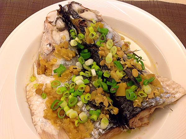 女兒問我怎麼不用破布子蒸魚,我説家中調料實在太多,今天就用家中現有的鹹鳯梨醬來蒸剩餘的半尾烏魚頭,蒸出的味道和破布子有異曲同工之妙!
