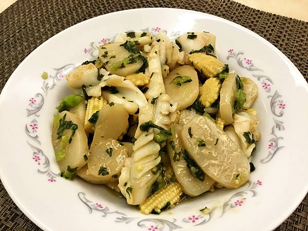 老公說兩個人吃飯別麻煩弄菜了,炒個年糕隨便吃吃就好,因此我今天將江浙小館中很具代表性的「雪菜炒年糕」中,加了魷魚和玉米筍稍稍做了一點變化,使這道名小吃變得更美味了🤗😋